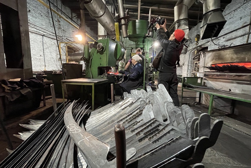 Или, например, во время «ресерча» мы нашли героя, который и выступает на турнире косарей, и сам работает на косном заводе, он закладывает косы в печь. Очень интересно за ним наблюдать, на мой взгляд это величественно, простая, но тяжелая работа, это еще один ракурс на большую историю.
